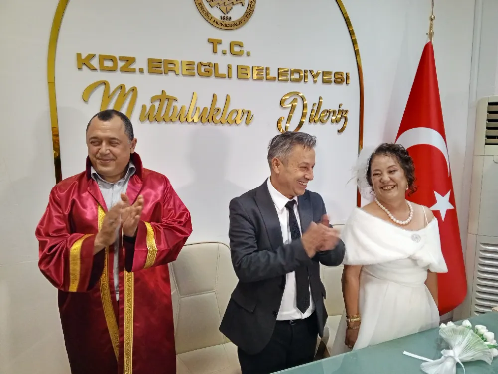 Aradan geçen 25 yılın ardından, Kdz Ereğli Atatürk Kültür Merkezi'nde düzenlenen nikah töreni adeta bir aile buluşması havasında gerçekleşti. Çiftin kızları ve yakın akrabaları bu özel günde anne ve babalarının yanında yer alırken, salondaki davetliler de mutluluklarına ortak oldu.