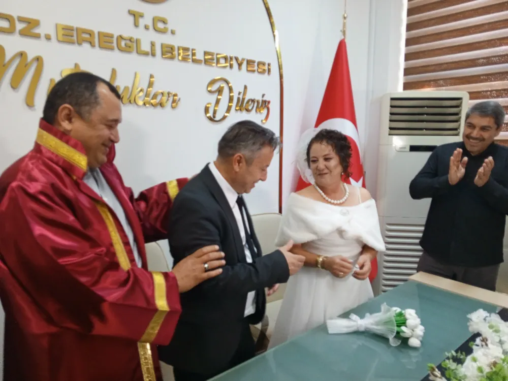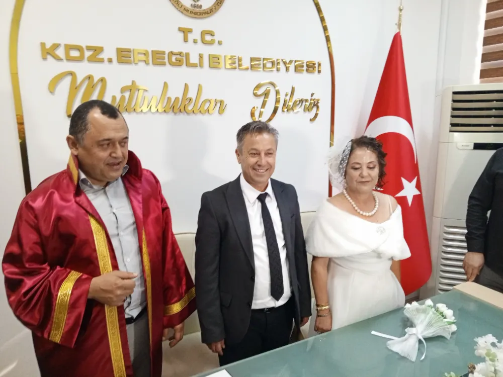 Aradan geçen 25 yılın ardından, Kdz Ereğli Atatürk Kültür Merkezi'nde düzenlenen nikah töreni adeta bir aile buluşması havasında gerçekleşti. Çiftin kızları ve yakın akrabaları bu özel günde anne ve babalarının yanında yer alırken, salondaki davetliler de mutluluklarına ortak oldu.