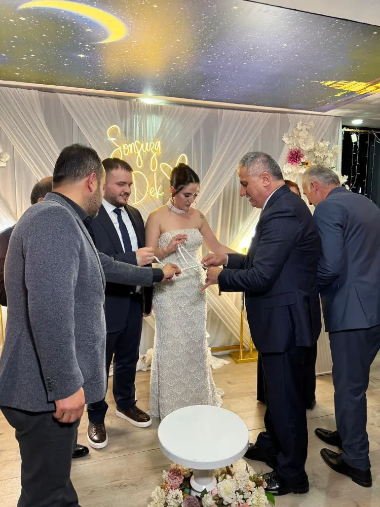 Gecenin en anlamlı anı, genç çiftin nişan yüzüklerinin takılması oldu. Milletvekili Saffet Bozkurt, hem duasıyla hem de iyi dilekleriyle Sezer ve Fatma'nın hayat yolculuğuna uğur kattı. Bozkurt'un kurdeleyi keserken söylediği içten sözler, salonda duygusal ve coşkulu dakikaların yaşanmasına vesile oldu.