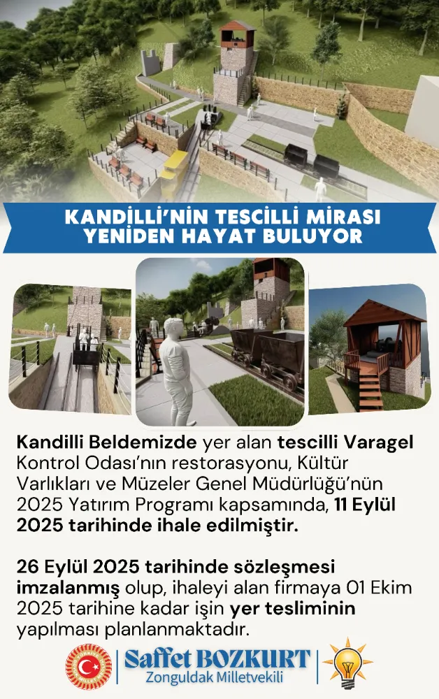 Bozkurt; "Bölgemizin kömür tarihiyle özdeşleşen Varagel Kontrol Odası, bu restorasyonla birlikte yeniden ayağa kalkacak. Bu çalışma sadece Kandilli için değil, Zonguldak'ın kültürel mirası için de çok değerli bir kazanım olacak. Geçmişimizi yaşatırken, gelecek nesillere kalıcı bir miras bırakıyoruz. Bu projede emeği geçen tüm kurum ve yetkililerimize teşekkür ediyorum"dedi.